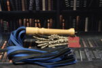 Oak handled Flogger with Shot Gun Cap and stainless steel eye + Blue and Black half inch leather falls.