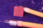 25mm Oak Folding Spreader bar with yellow leather inserts and Red stitching all stainless steel fittings Capped ends 2 adjustable connectors