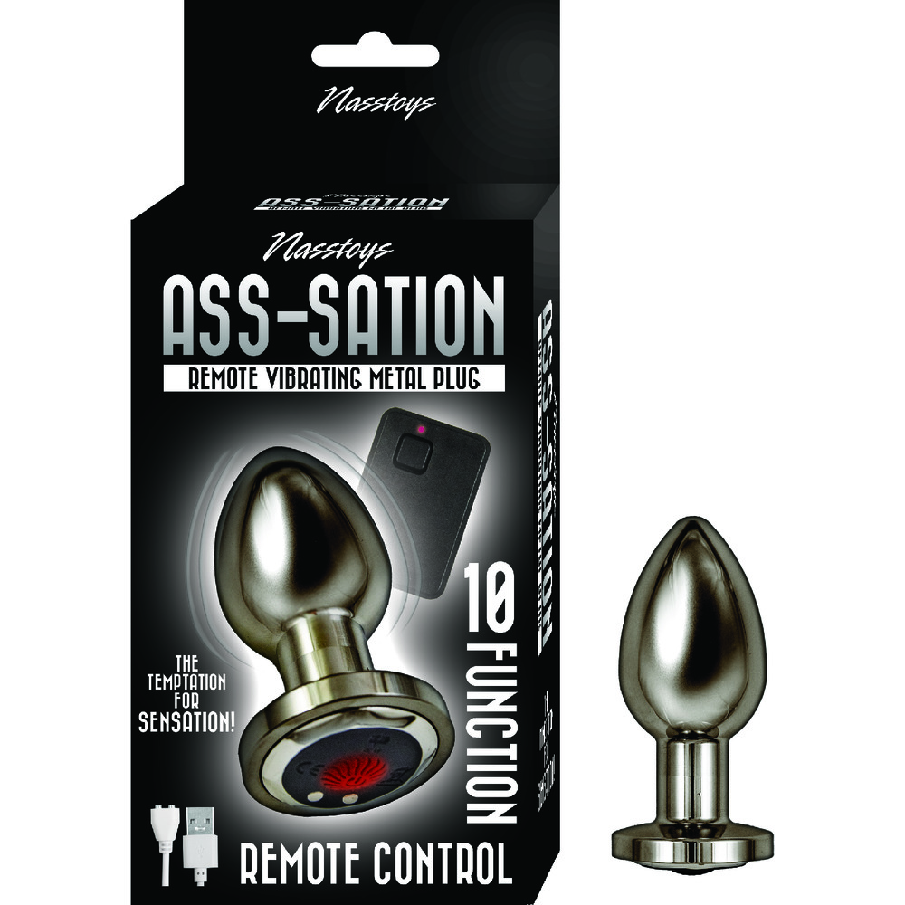 The Nasstoys Ass-Sation Butt Plug is a must-have for every booty! Sized perfectly for beginners with a slim tapered shape and flat base with 10 tantalizing vibrating functions which may be controlled by pressing the power button on the base of the plug or with the discreet remote control!
