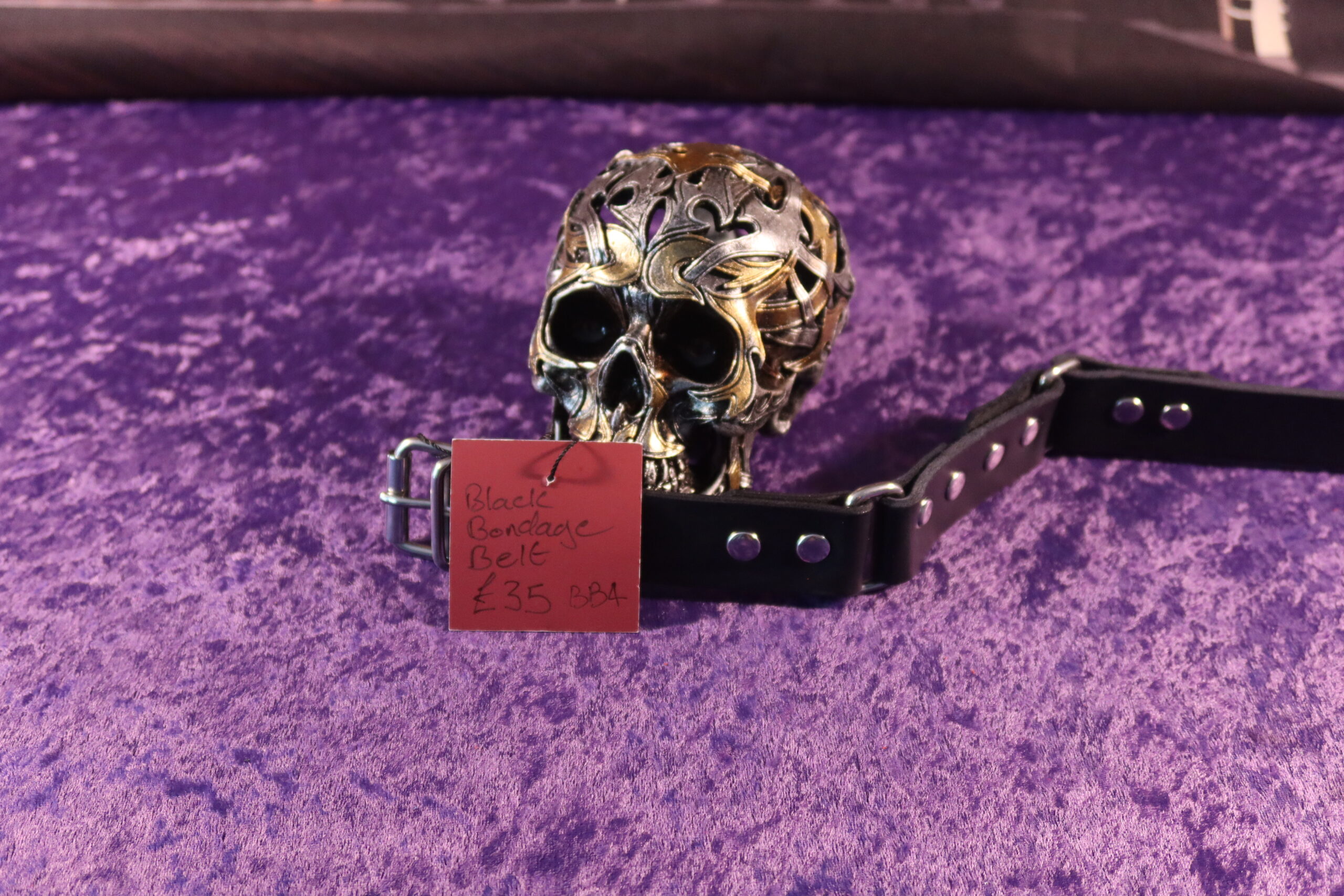 Bondage Belt Black leather with Stainless Steel Fittings Size 13.5 to 39 Inches Nickel Free