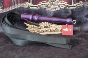 Brown Leather Horse Hair Flogger With Black Horse hair chrome mushroom cap Made in England