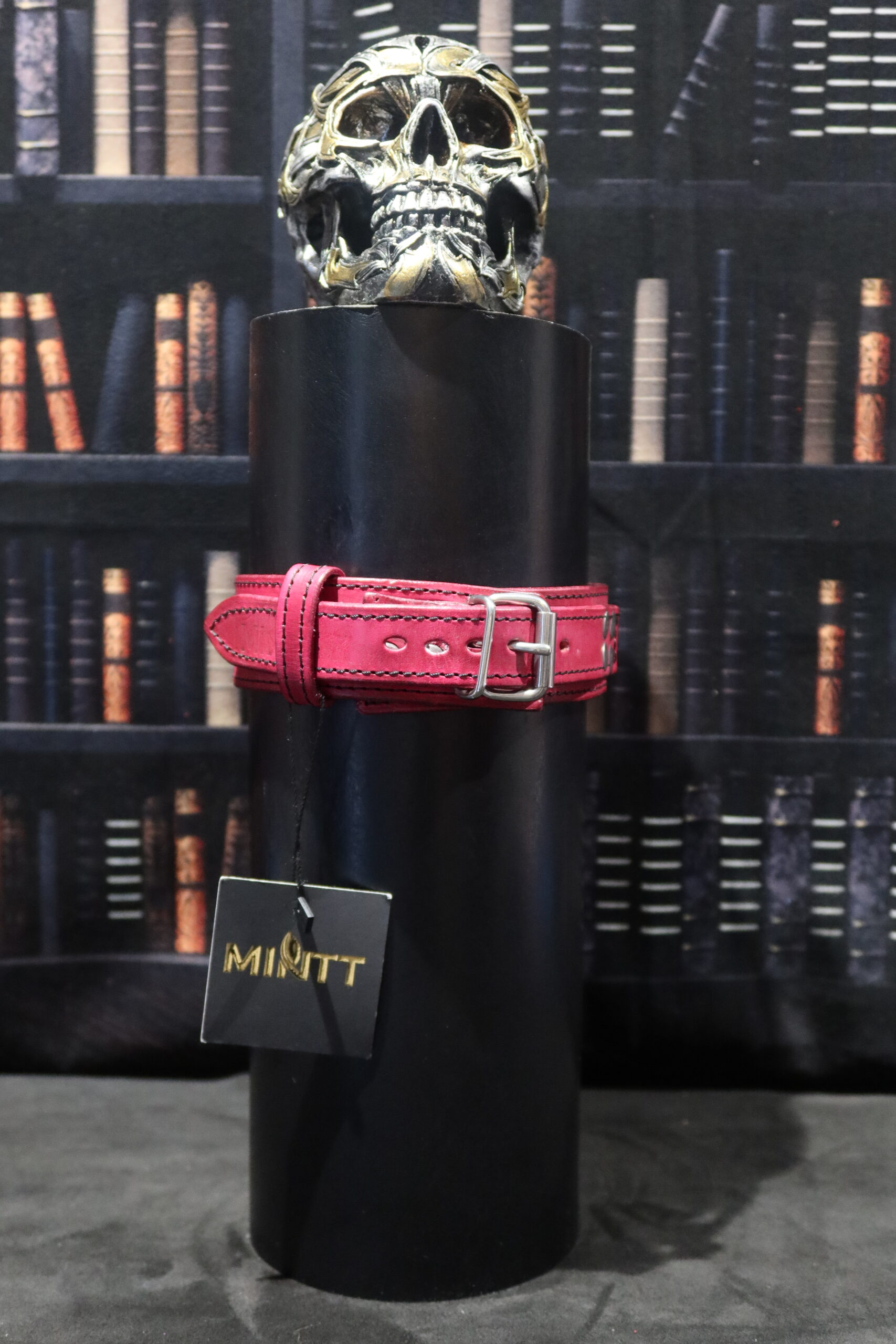 DarkPink/Burgandy collar with Rainbow stitching Centre ring and Stainless fittings