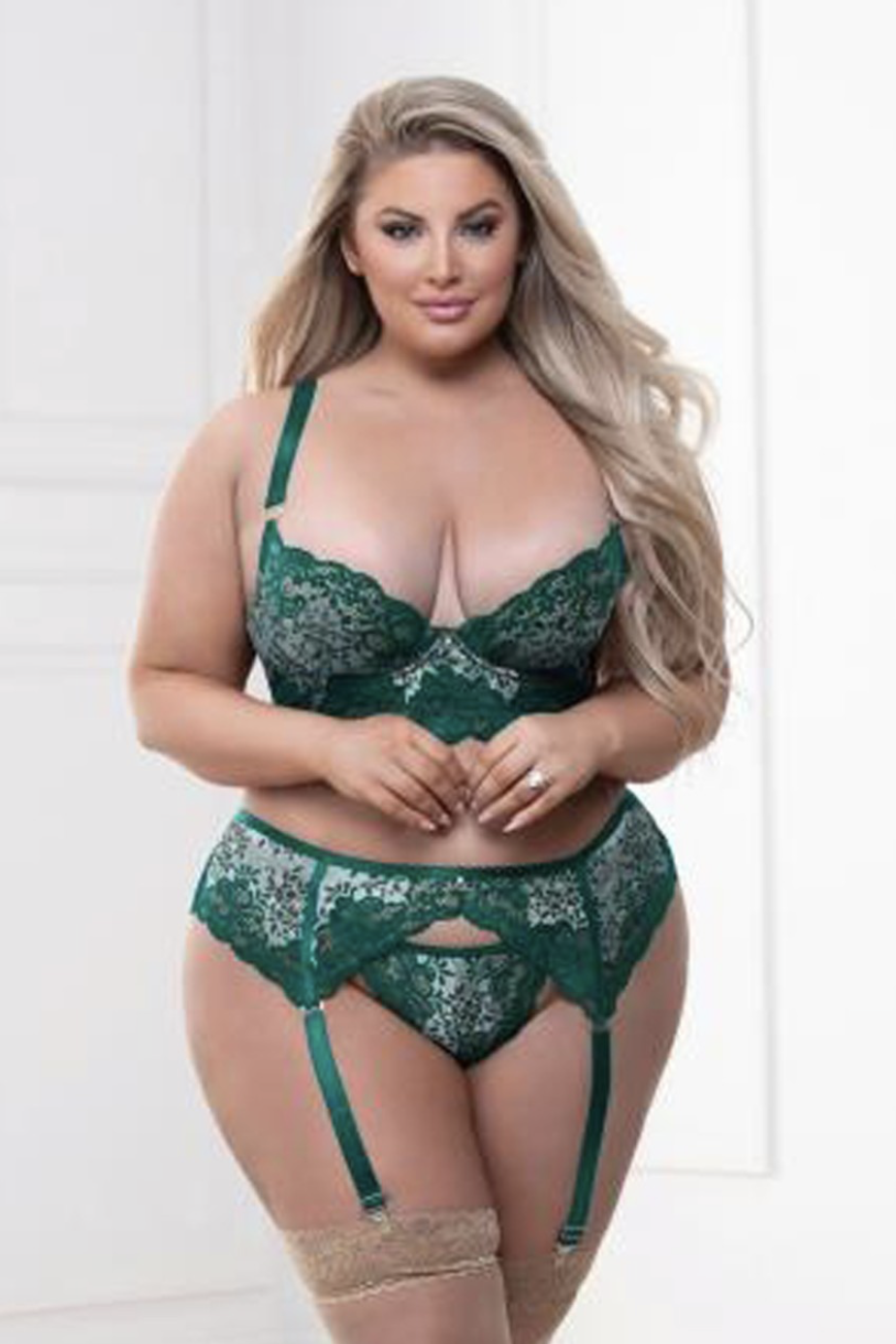 Champagne Wishes Bra Set Green Lacey 3 Piece