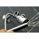 One end of the hose screws into your shower, the other end is where you attach your choice of nozzle. Where the Shower Enema Kit connects with your shower it has a valve that directs the water either through the nozzle and into you or to the shower head.