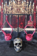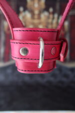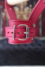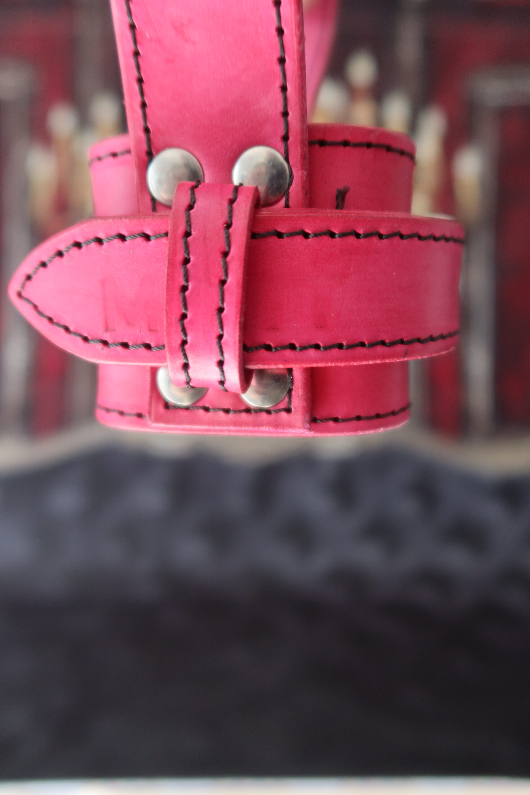 Dyed Set of Pink Suspension cuffs with Black Stitching, wooden Handle and Stainless steel Nickel Free fittings