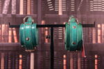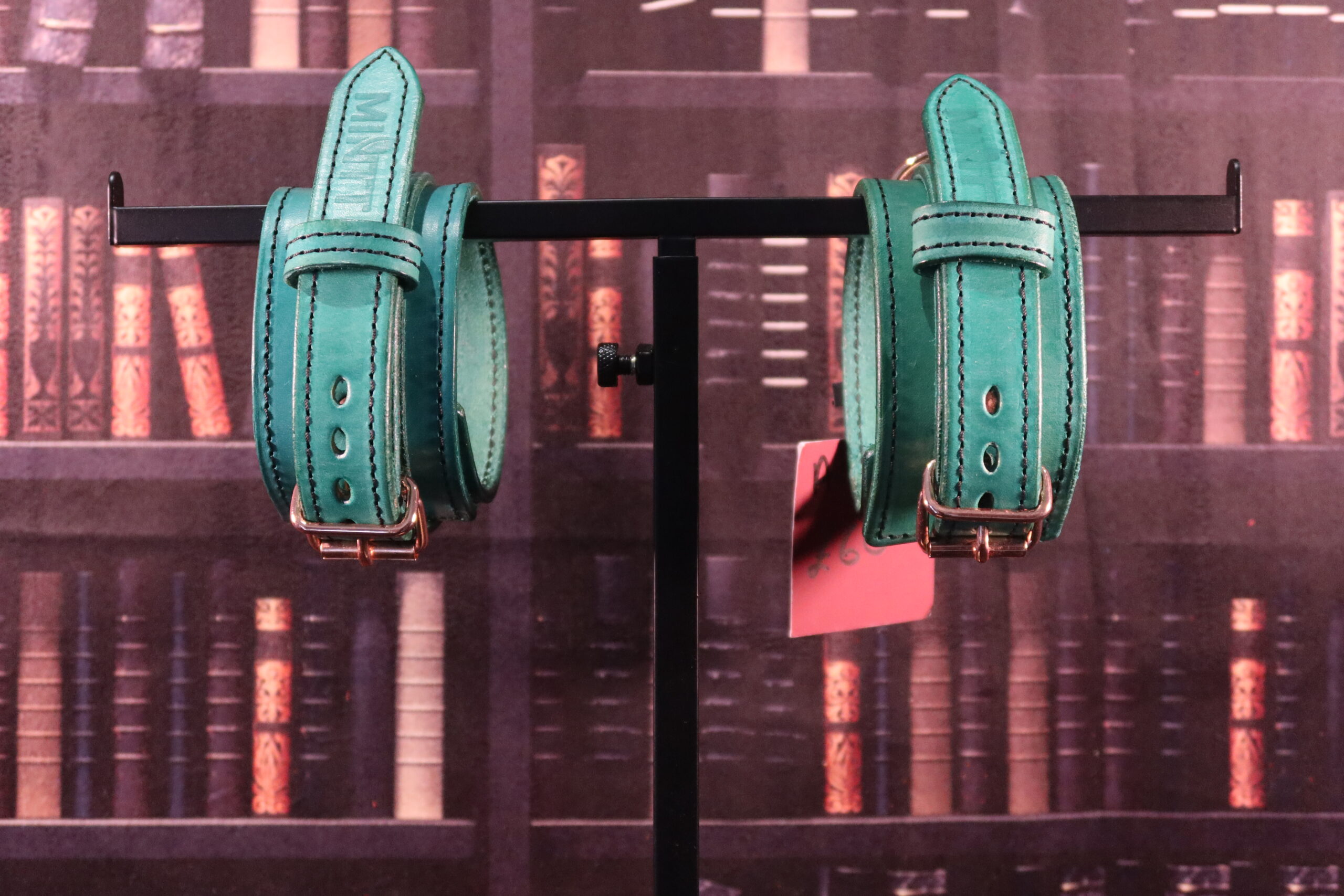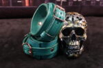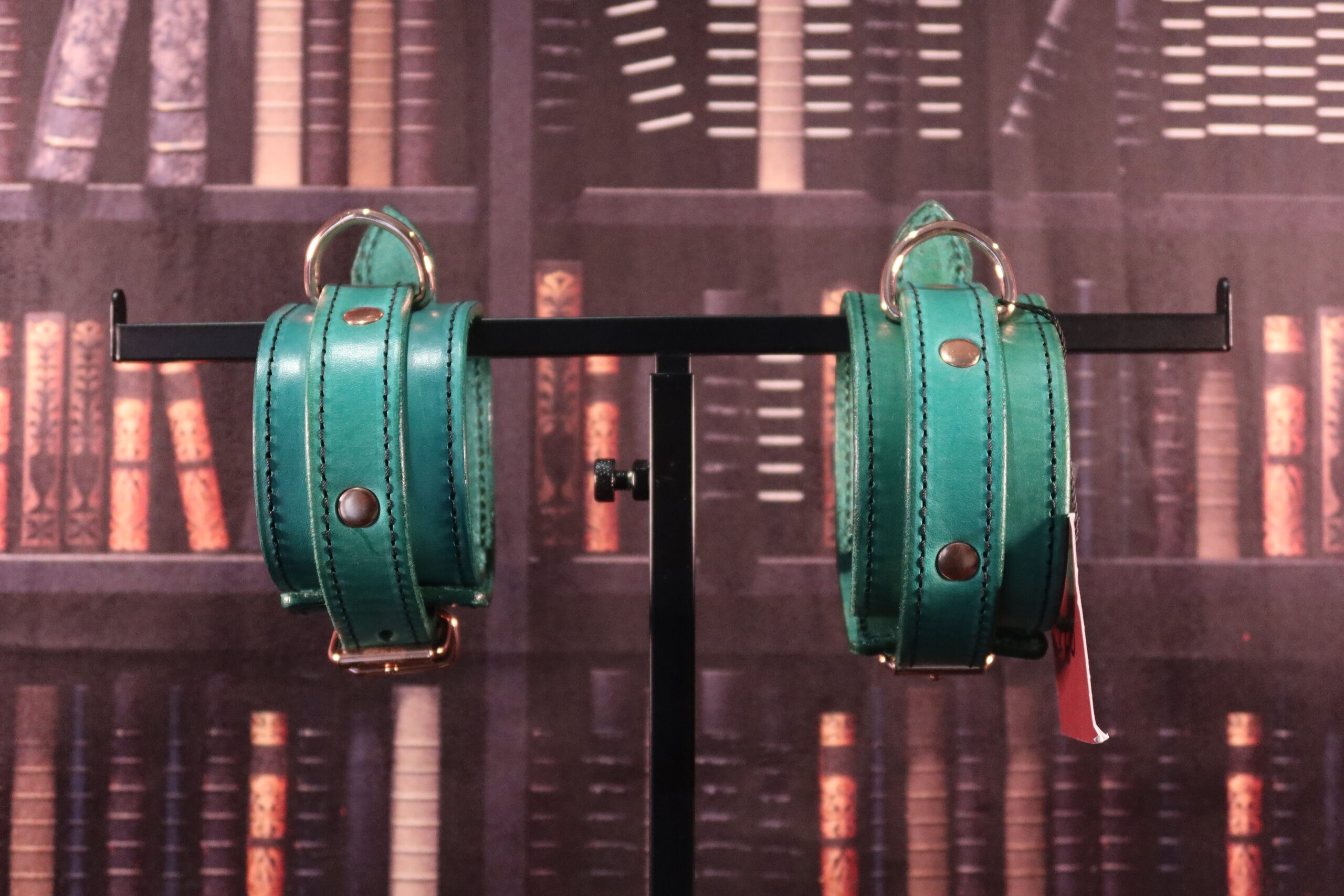 Green Leather Large cuffs with Black Stitching and Rose Gold Nickel free Fittings