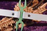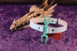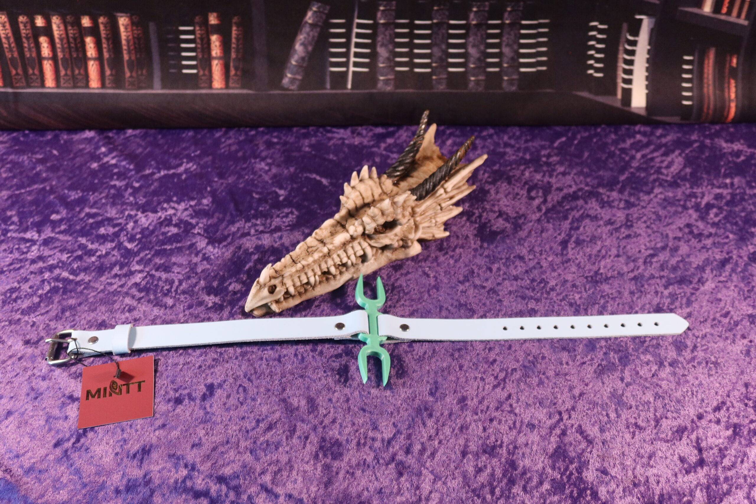 Heretic Fork Collar. Baby Blue Leather Collar with Stainless fittings and Green 3D printed Fork..Nickel Free Size 11” to 16.5 Inches.