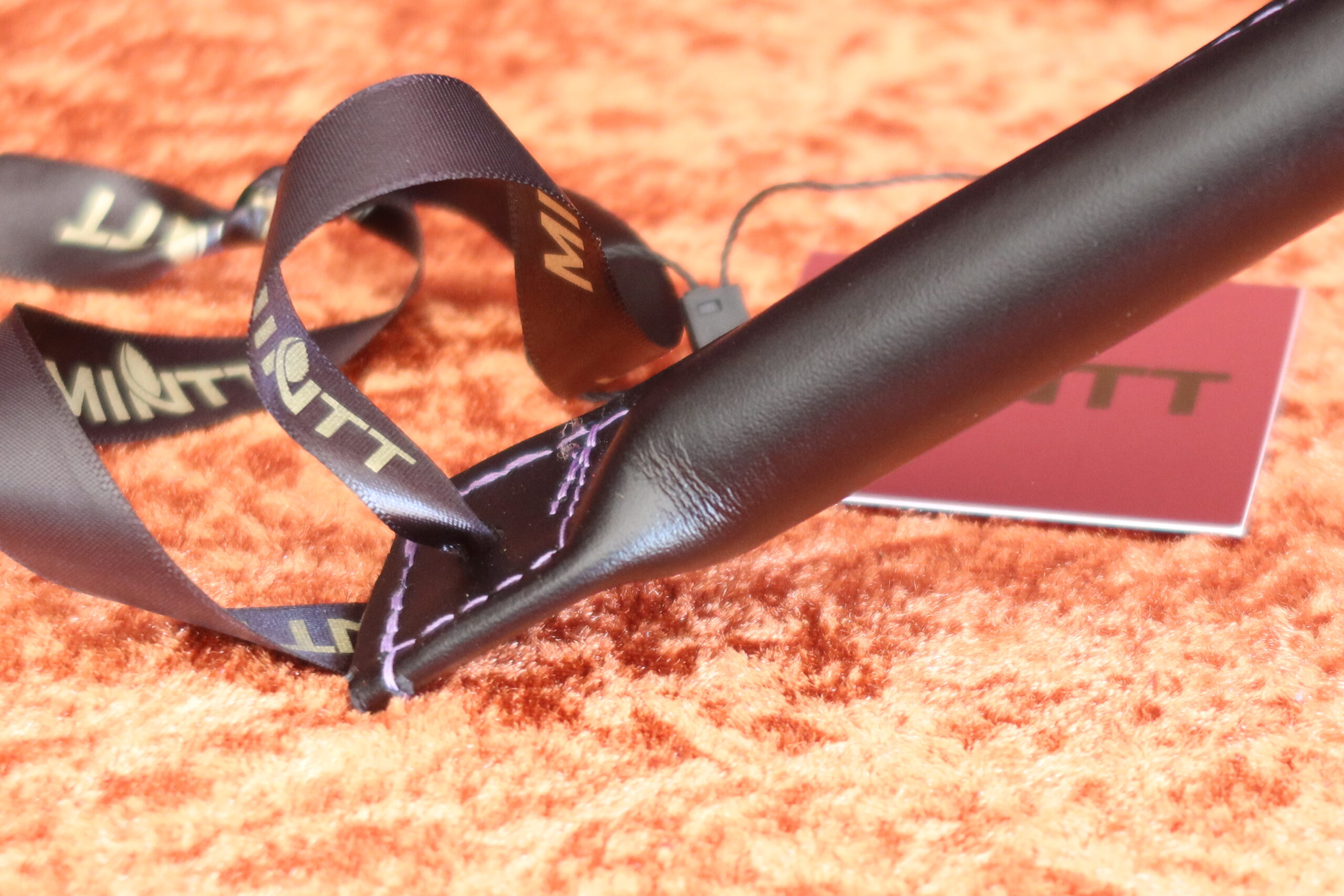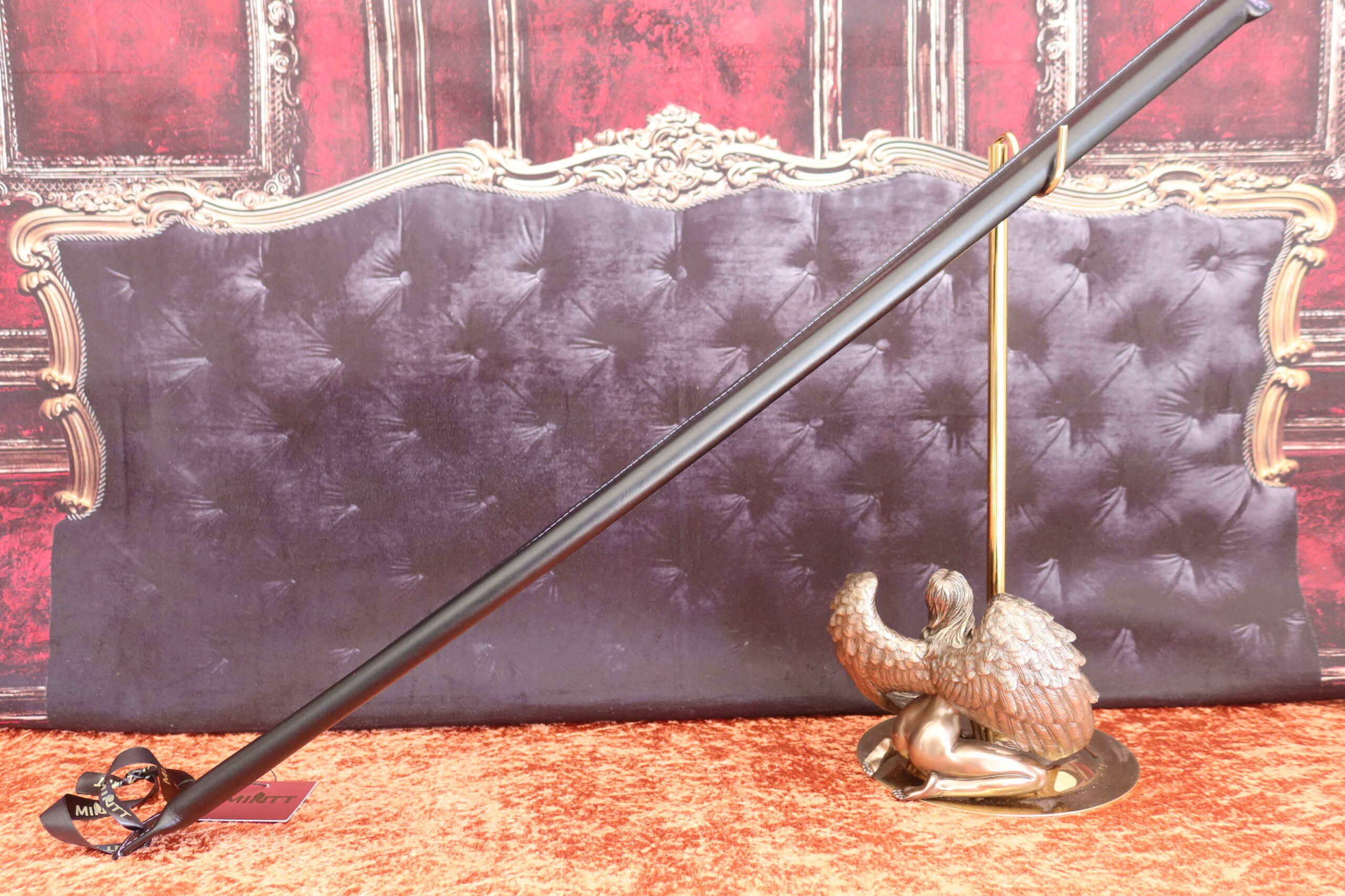 Deliver precision and power with this expertly crafted loaded cane, designed with internal ball bearings for enhanced weight and performance. Wrapped in striking black leather with purple stitching, it combines durability with a bold, commanding aesthetic. Created for light to heavy play. Cane Length: 80cm