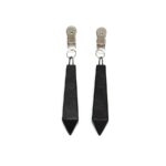 The fabulous Long Nipple Clamps with Weight features a silver nipple clamp with a small ‘O’ ring to which a long black leather covered weights with a soft feel and clamp to each nipple to inflict a tugging sensation.