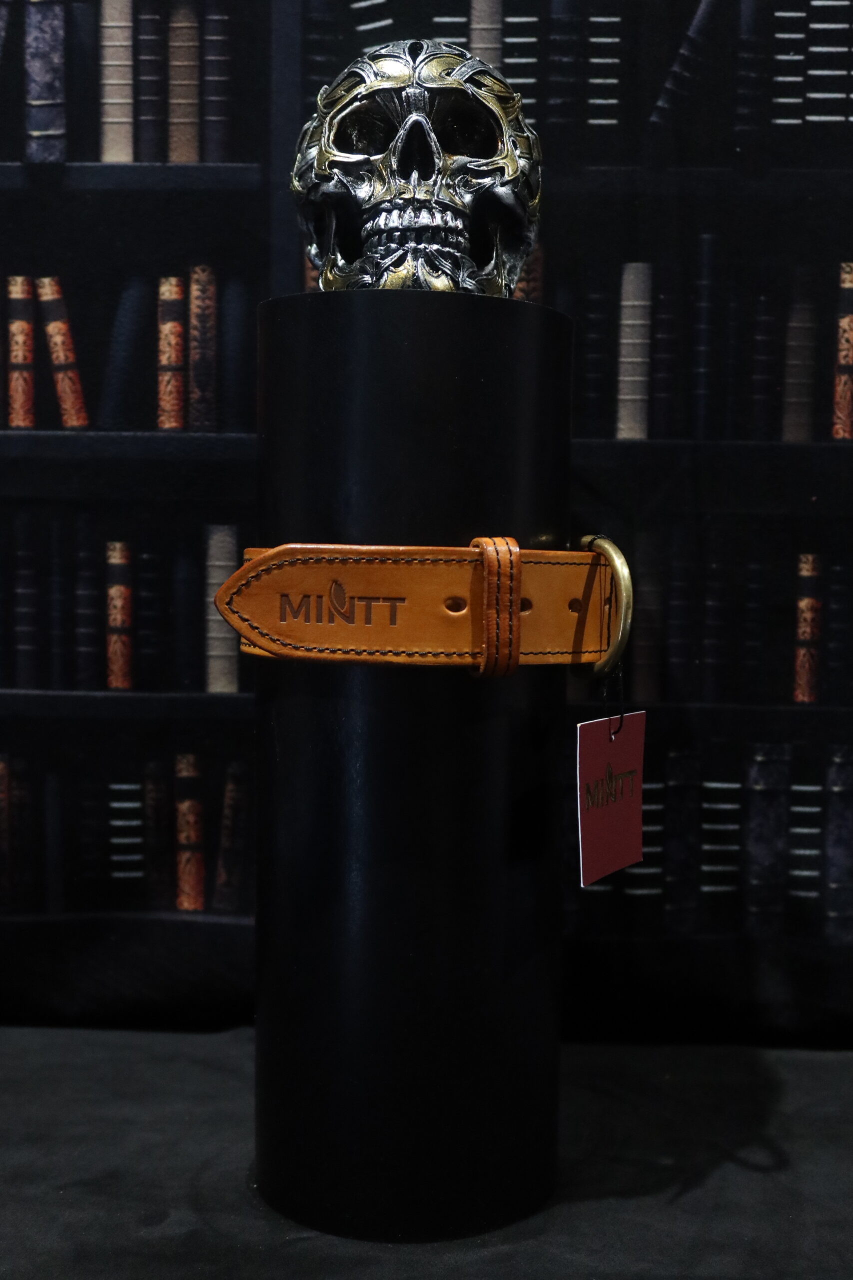 Medium/Large Tan with Black Stitching Leather Collar 38mm. Brass Fittings.