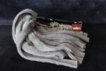 Oak handle flogger sprayed black w/ a shotgun cap end + a stainless steel eye w/ grey 20mm furry falls. Lightweight.