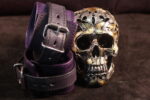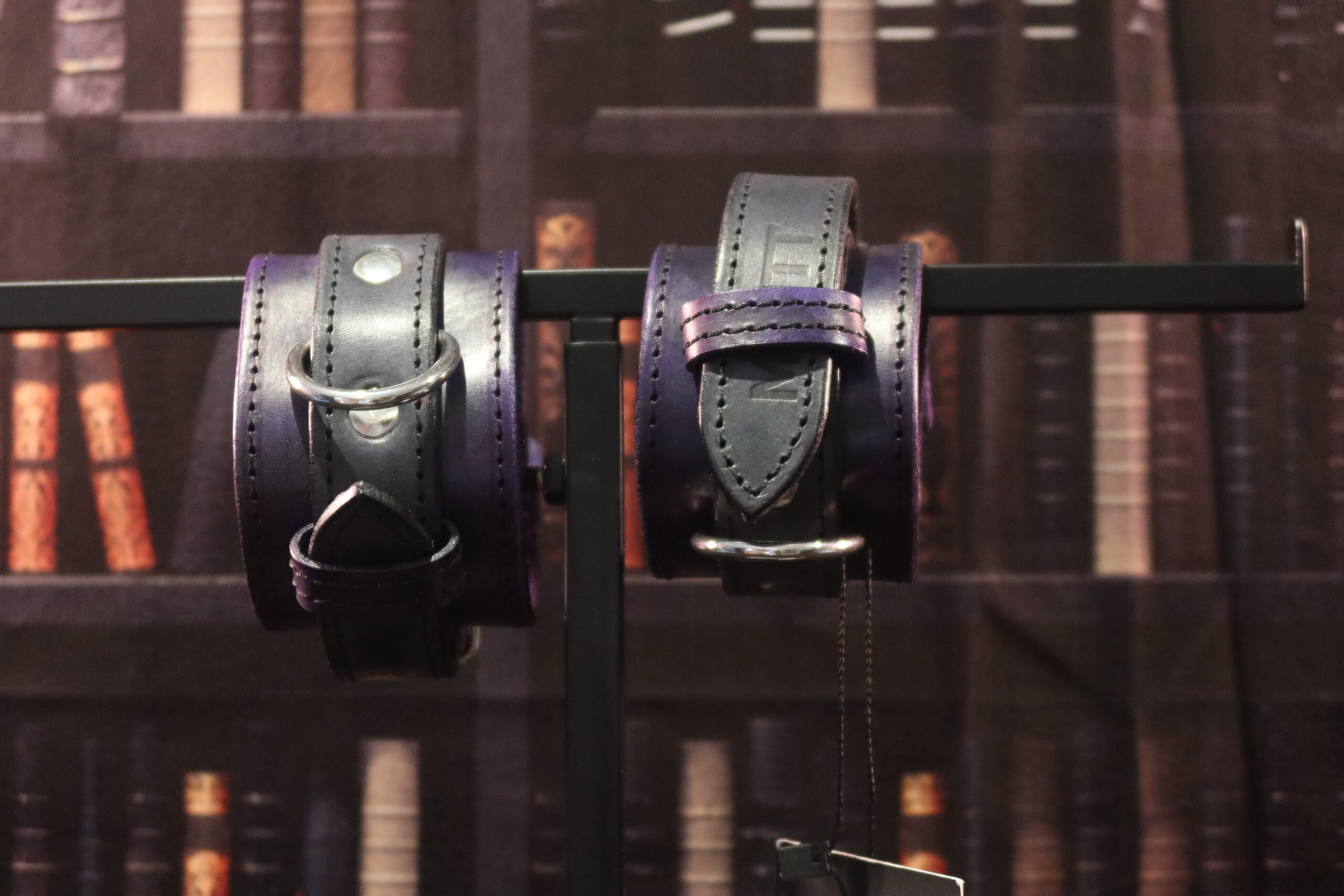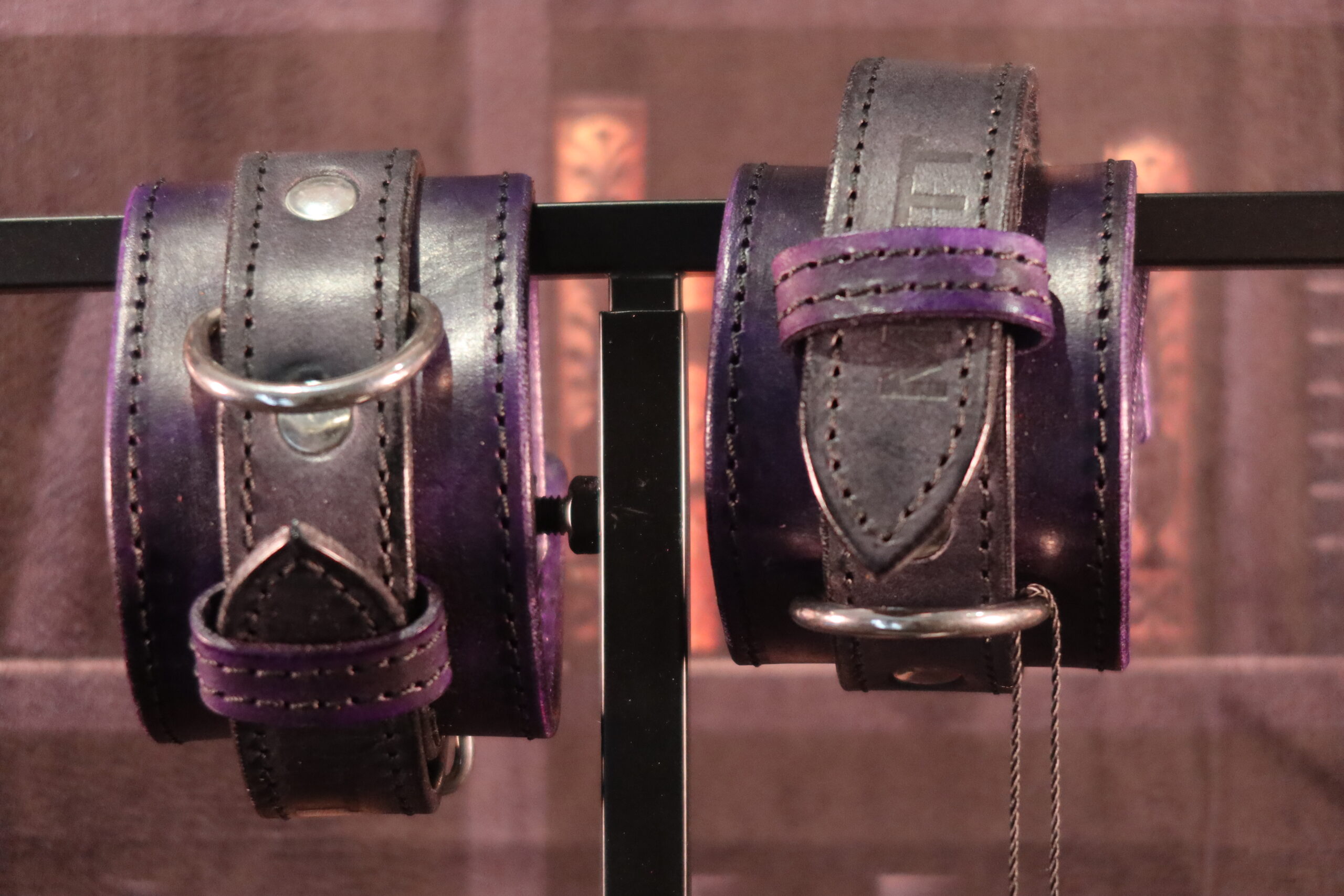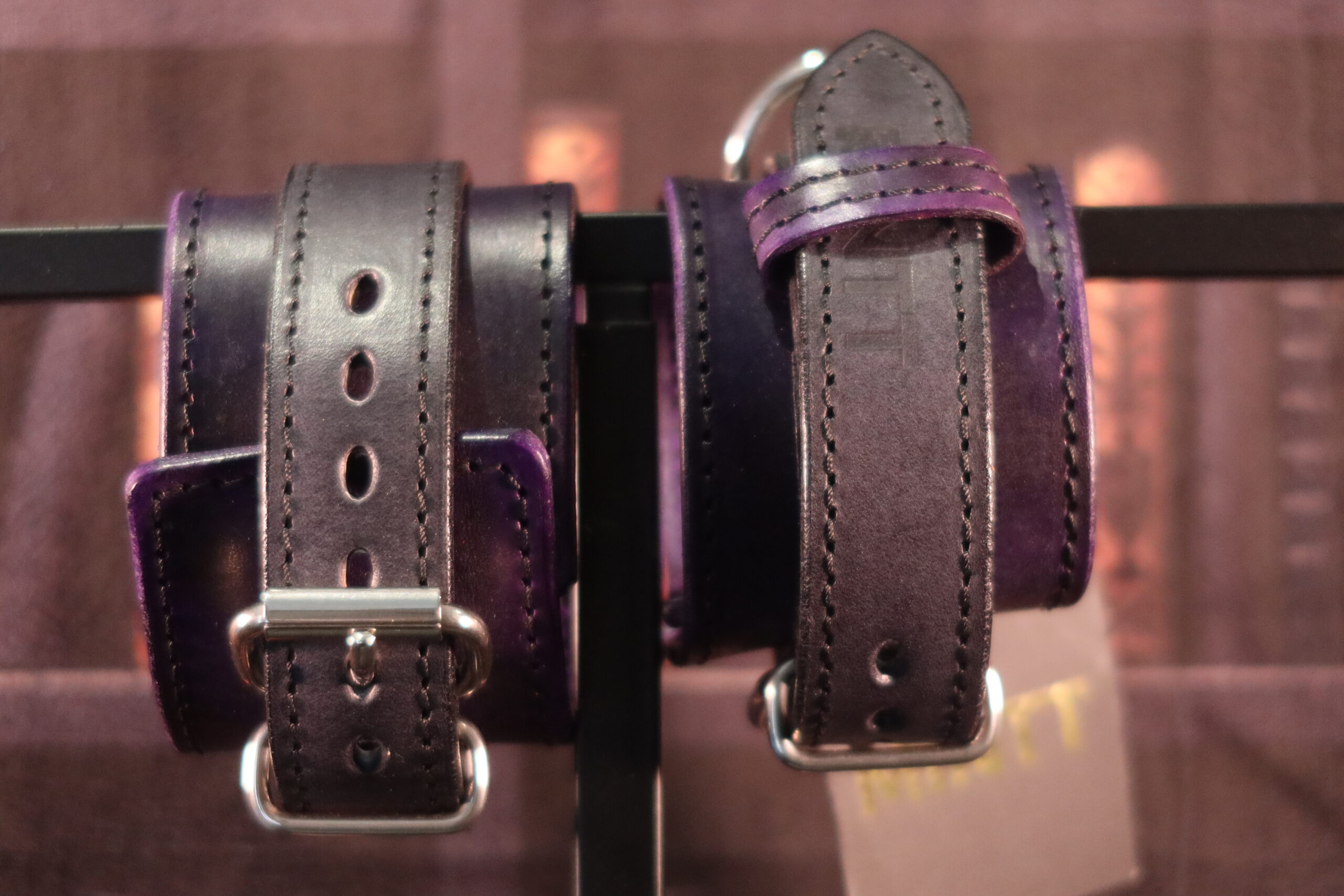 Dyed Purple and Black cuffs with Black  Stitching and Stainless steel Nickel Free fittings