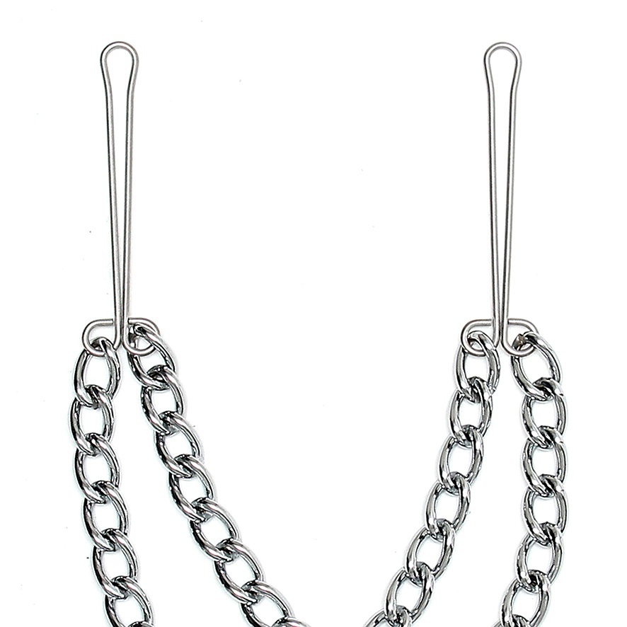 Silver nipple clamps and Double chain which just easily attach to the nipple