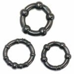 Black Triple Cockring Kit, consisting of 3 different sized beaded cockings, for a super hard erection.