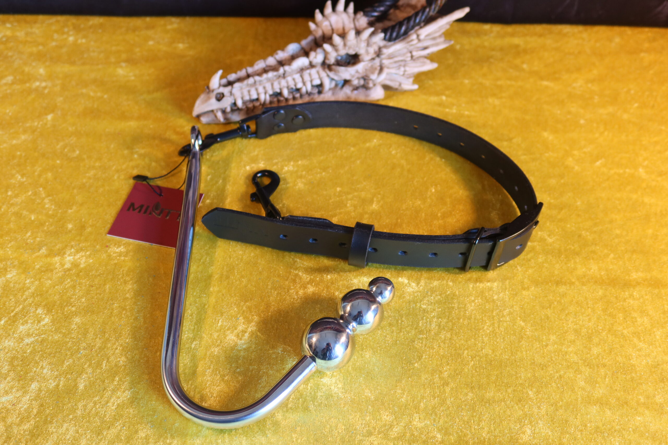 Treble Ball End Anal Hook and Black Leather Strap and Black Stainless Steel Fittings
